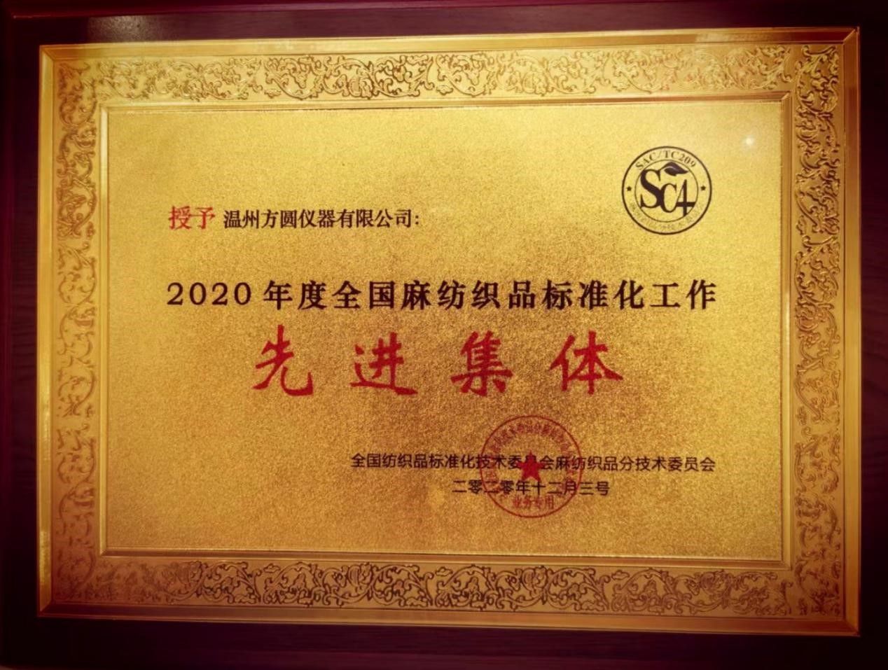 中國(guó)麻紡行業(yè)協(xié)會(huì)會(huì)長(zhǎng)、全國(guó)麻紡織品標(biāo)準(zhǔn)化技術(shù)委員會(huì)董春興主任作了麻紡行業(yè)的形勢(shì)分析,同時(shí)也對(duì)麻標(biāo)委接下來(lái)的工作安排提出了要求。本次大會(huì)還表彰了2020年度標(biāo)準(zhǔn)化工作先進(jìn)單位、先進(jìn)個(gè)人和優(yōu)秀觀察員。溫州方圓儀器有限公司憑借多年以來(lái)在紡織行業(yè)的突出貢獻(xiàn)被評(píng)為2020年度全國(guó)麻紡織品標(biāo)準(zhǔn)化工作先進(jìn)集體。